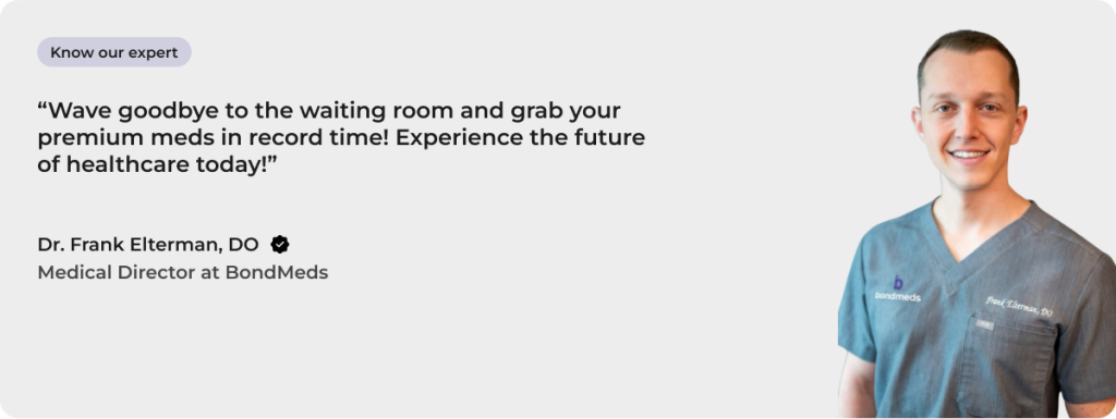 Nope! BondMeds doesn’t require insurance. We provide transparent pricing on treatments, and your medical visit, ongoing shipments, and provider messaging are all included in one affordable price.